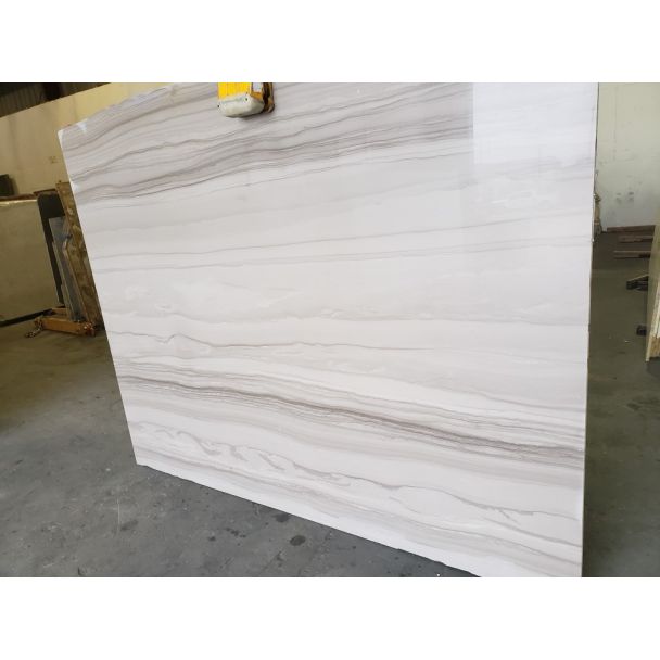 Athens Grey is a soft pearl grey with a touch of violet and a dramatic linear pattern.