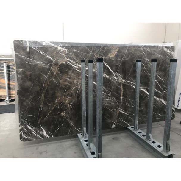 Collemandina’s surface is a deep brown shade with crisp veining in shades of white and gold, making this stone an exotic piece. This classic, polished stone is the perfect statement piece for a modern setting that has earthy tones.